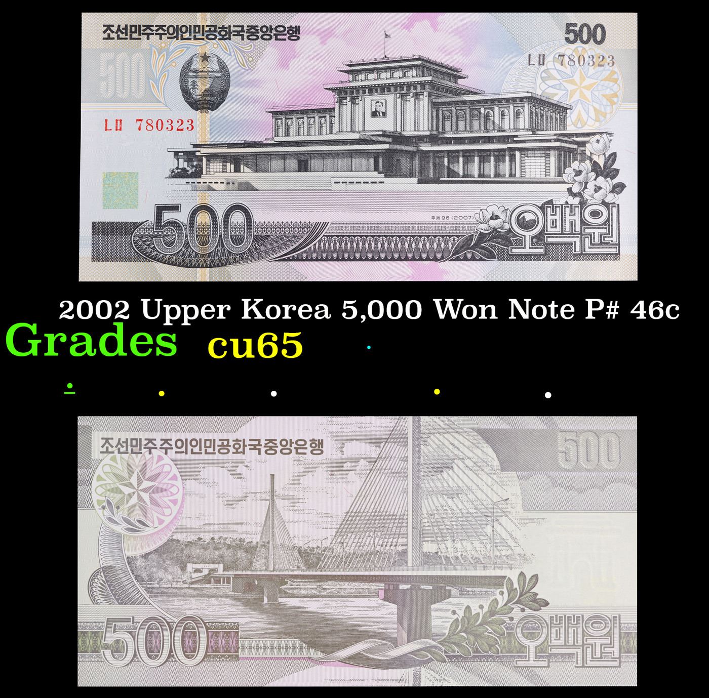 2002 Upper Korea 5,000 Won Note P# 46c Grades Gem CU.