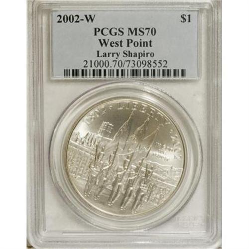 2002-W $1 West Point Silver Dollar MS70 PCGS. PCGS Pop