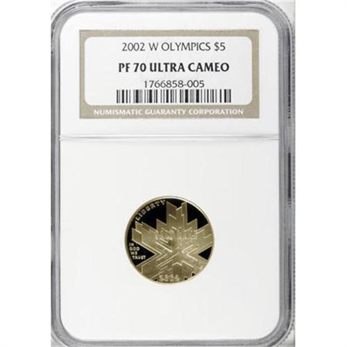 <B>2002-W $5 Olympics Half Eagle PR70 Deep Cameo NGC.</B></I> NGC Census: (0/0). PCGS Population (65/0). Numismedia Wsl. Price for NGC/PCGS coin in PR70: $530. (#99799)<BR><BR><b>Shipping:</b> Coins & Currency (<a target="_blank" href="http://www.heritageauctions.com/common/shipping.php">view shipping information</a>)