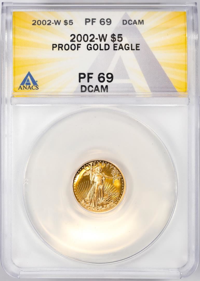 One 2002-W $5 Proof American Gold Eagle Coin ANACS PF69DCAM. ANACS Certified.