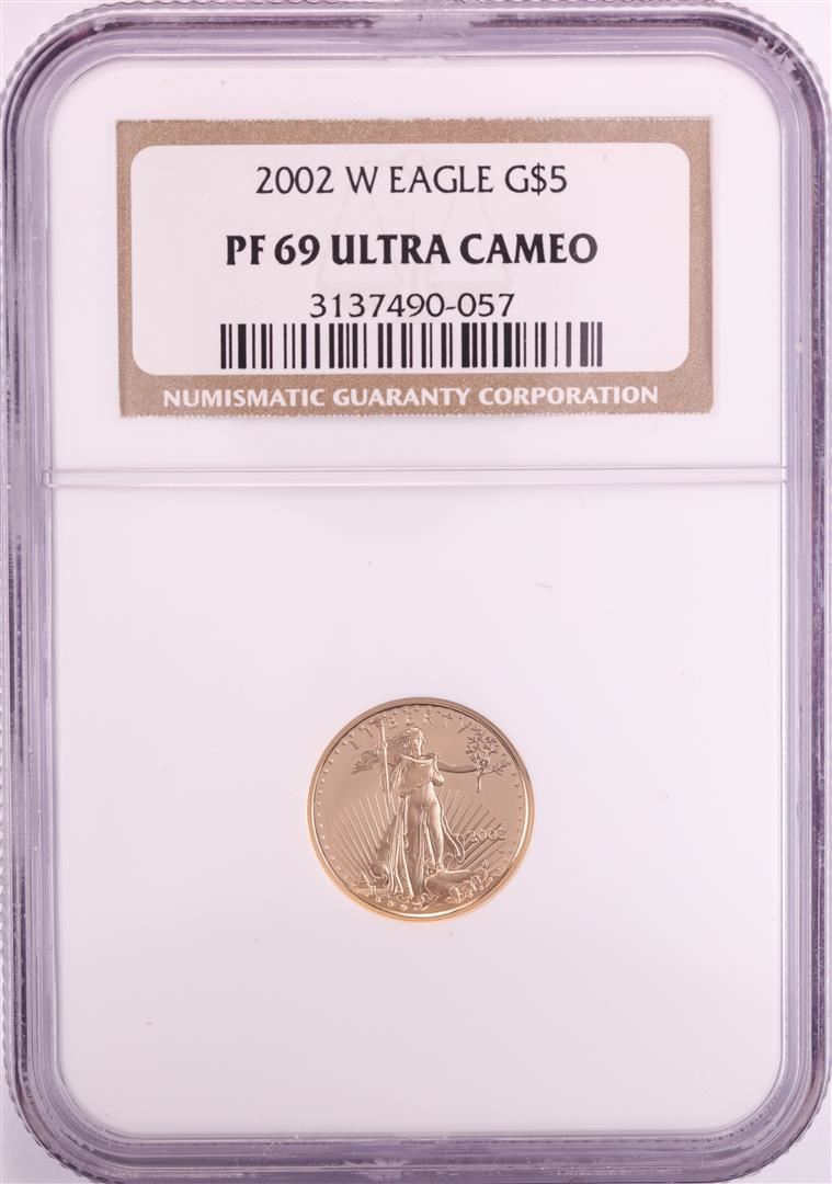One 2002-W $5 Proof American Gold Eagle Coin NGC PF69 Ultra Cameo. NGC Certified.