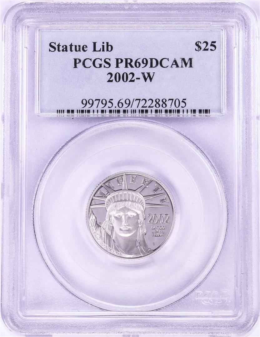 One 2002-W Proof $25 Platinum American Eagle Coin PCGS PR69DCAM. PCGS Graded.