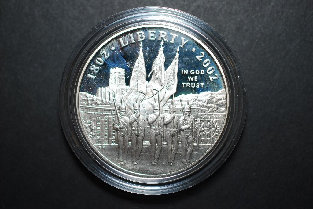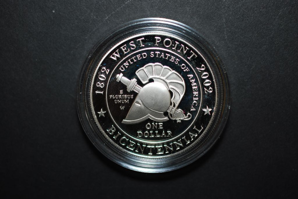 2002-W US Military Academy Bicentennial Commemorative Silver $1 Proof In Velvet Box With COA Included; 90% Silver 26.73 Grams; EST. $30-40