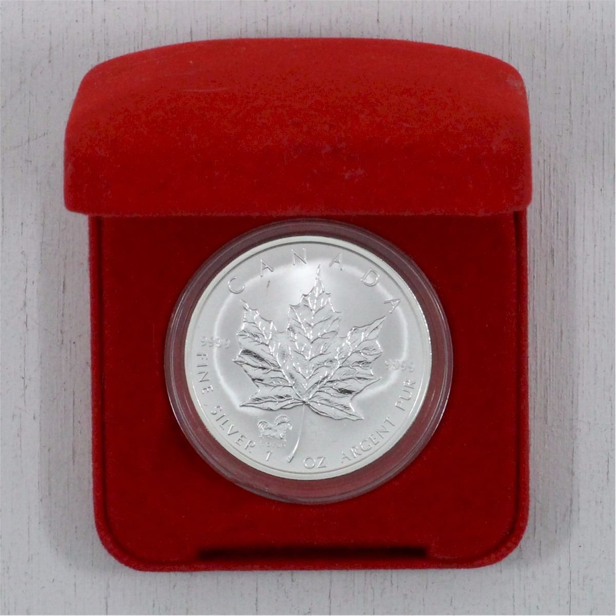 2002 privy mark $5 horse Silver Maple Leaf with red box and capsule (no tax)