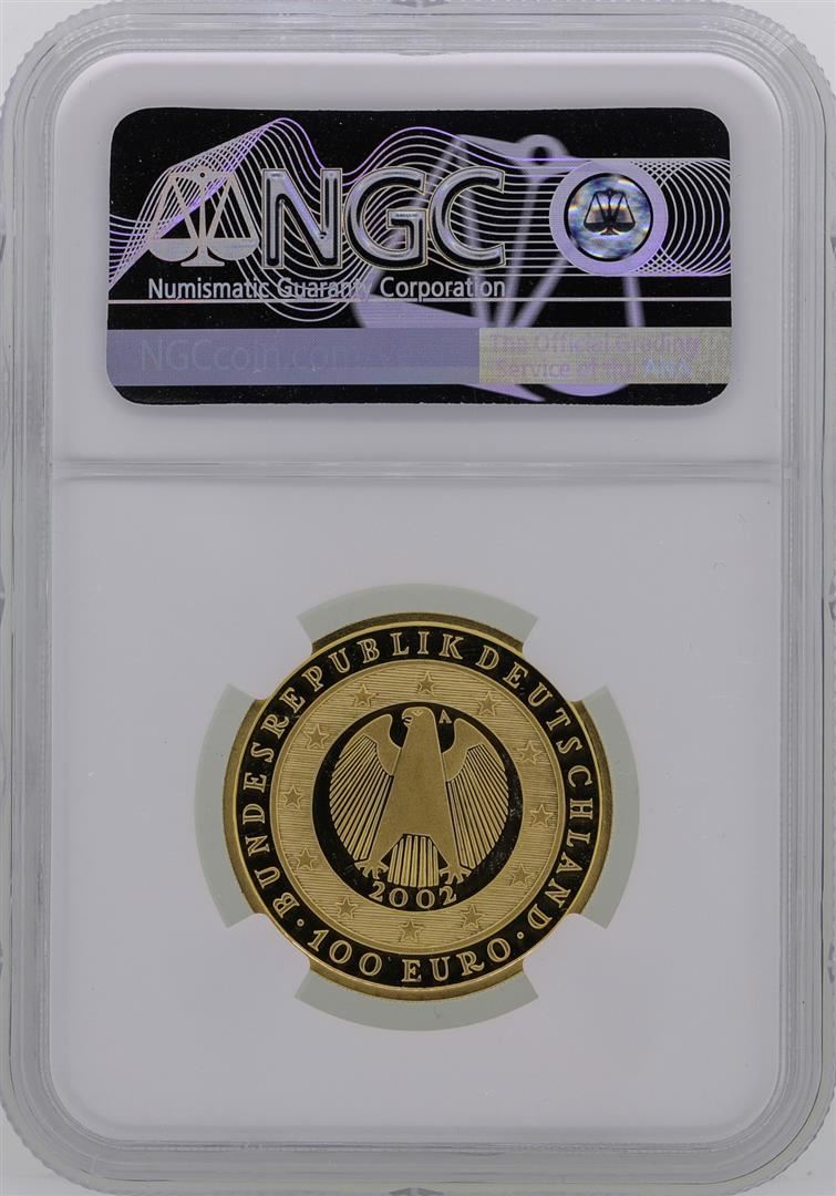 One 2002A Germany 100 Euro Introduction of the Euro Gold Coin NGC MS69. NGC Certified.