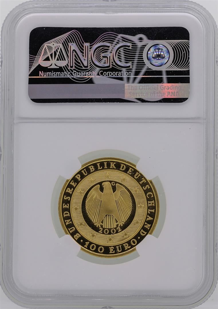 One 2002G Germany 100 Euro Introduction of the Euro Gold Coin NGC MS70. NGC Certified.