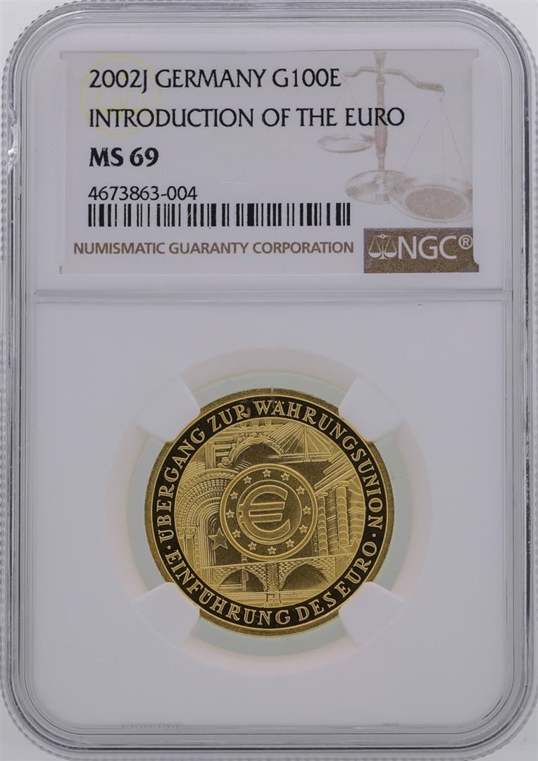 2002J Germany 100 Euro Introduction of the Euro Gold Coin NGC MS69