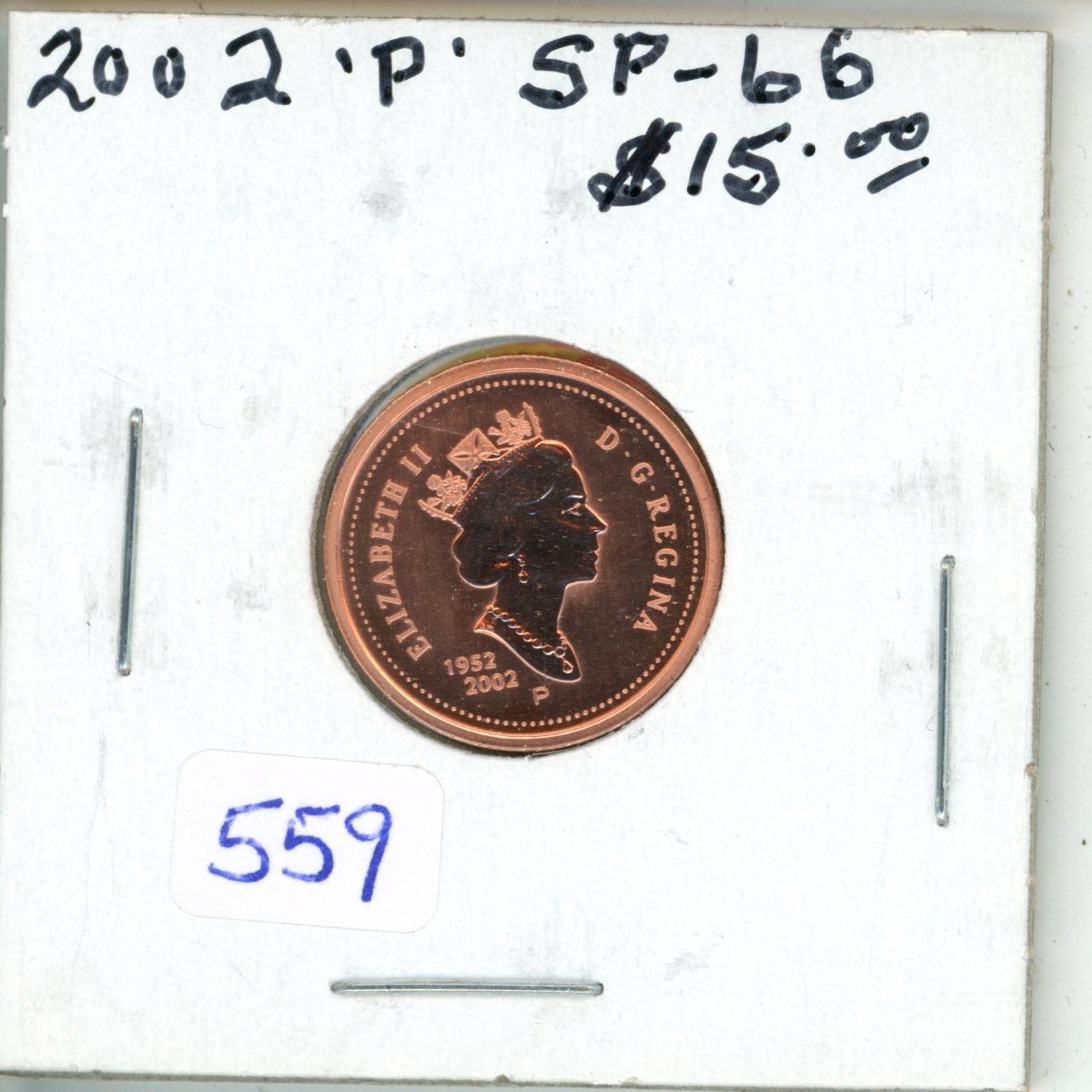 2002P Small Cent. Specimen-66 Red. From a Specimen set.