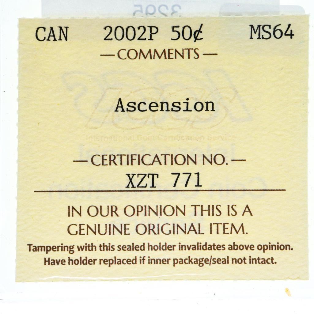 2002p Canada 50 Cents. MS64. Ascension. ICCS.