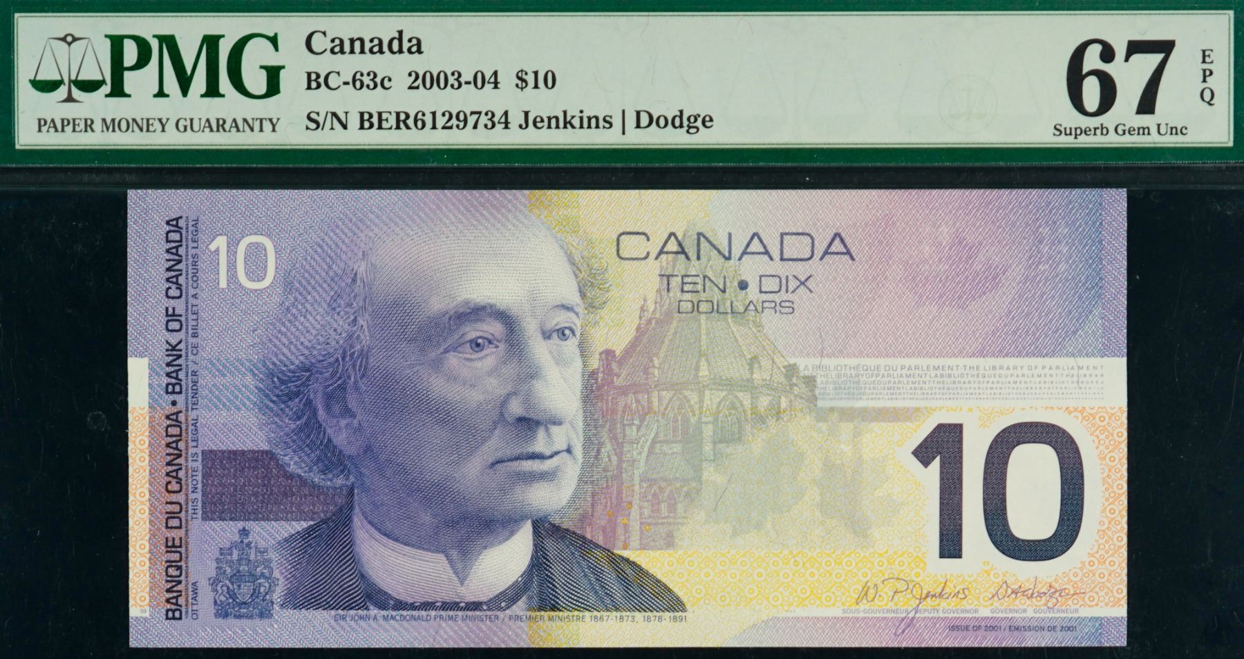 2003-04 $10 BC-63c #BER6129734 PMG Superb Gem Uncirculated-67