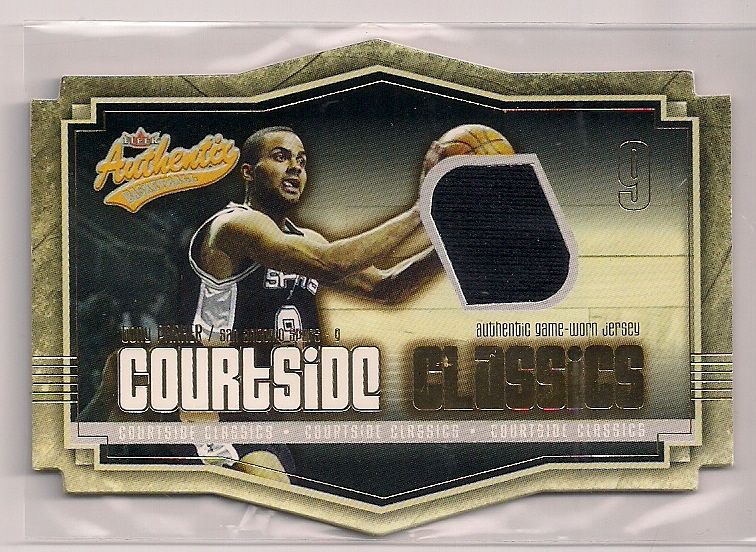 2003-04 Fleer Authentix Courtside Classics Tony Parker Game-Worn Jersey Insert Card. This Insert features a Solid Black piece of Game-Worn Jersey. Card is Near Mint to Mint.