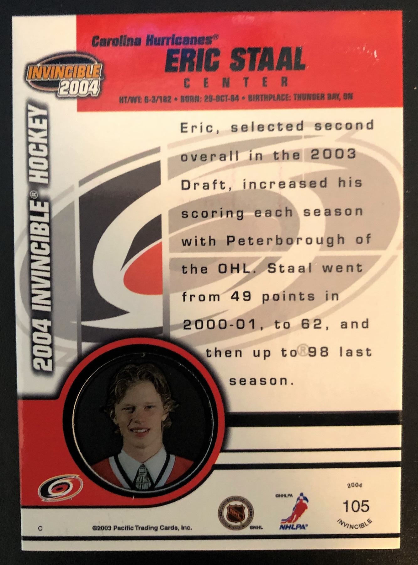 2003-04 Pacific Invincible Eric Staal Rookie #105