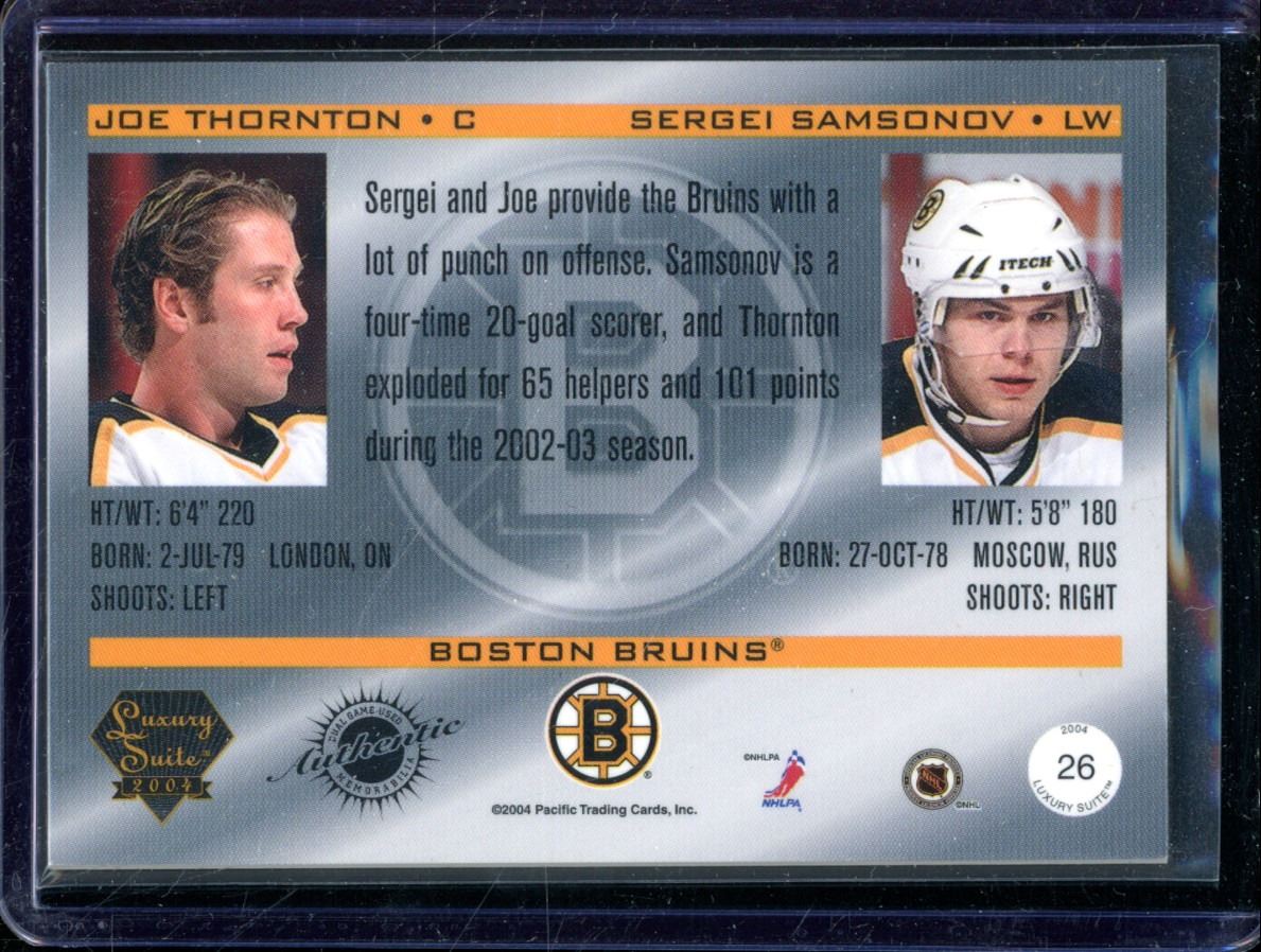 2003-04 Pacific Luxury Suite #26B Joe Thornton/Sergei Samsonov PATCH 10/100 BV $60