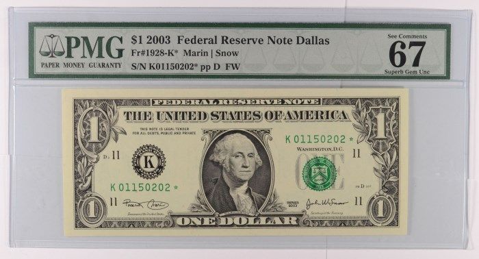 2003 $1.00 FEDERAL RESERVE ( STAR ) NOTE, PMG-67,