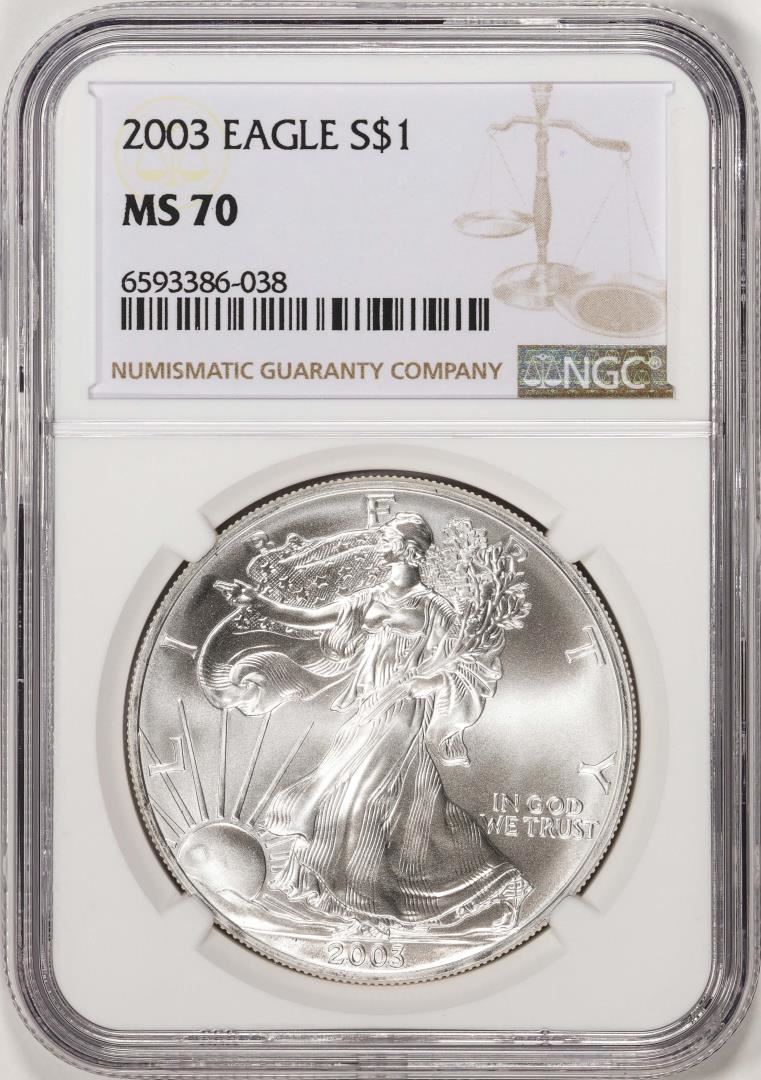 One 2003 $1 American Silver Eagle Coin NGC MS70. NGC Certified.