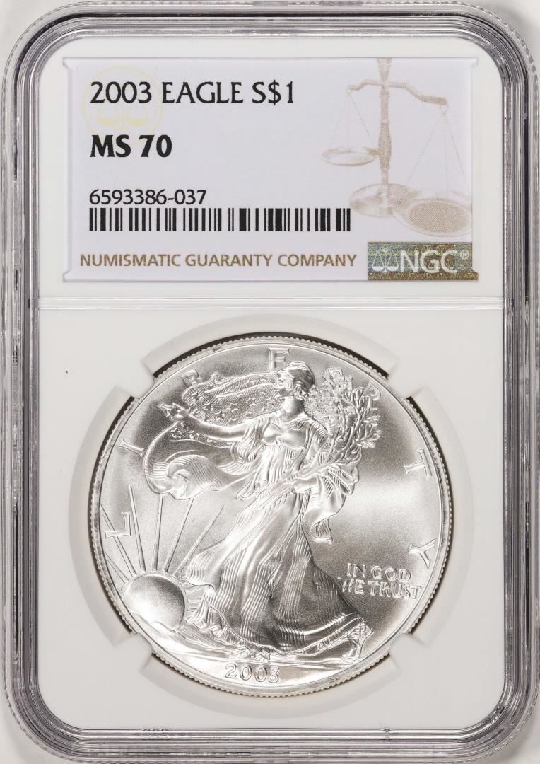 One 2003 $1 American Silver Eagle Coin NGC MS70. NGC Certified.
