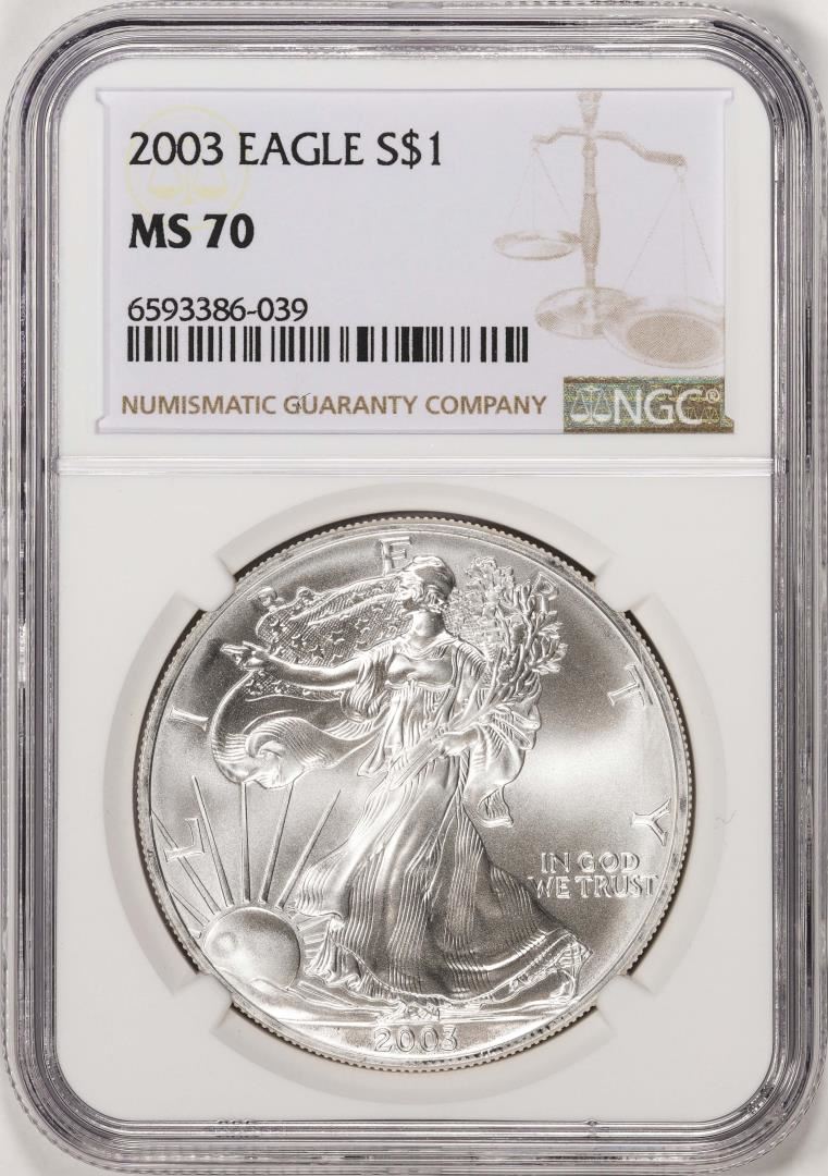 One 2003 $1 American Silver Eagle Coin NGC MS70. NGC Certified.