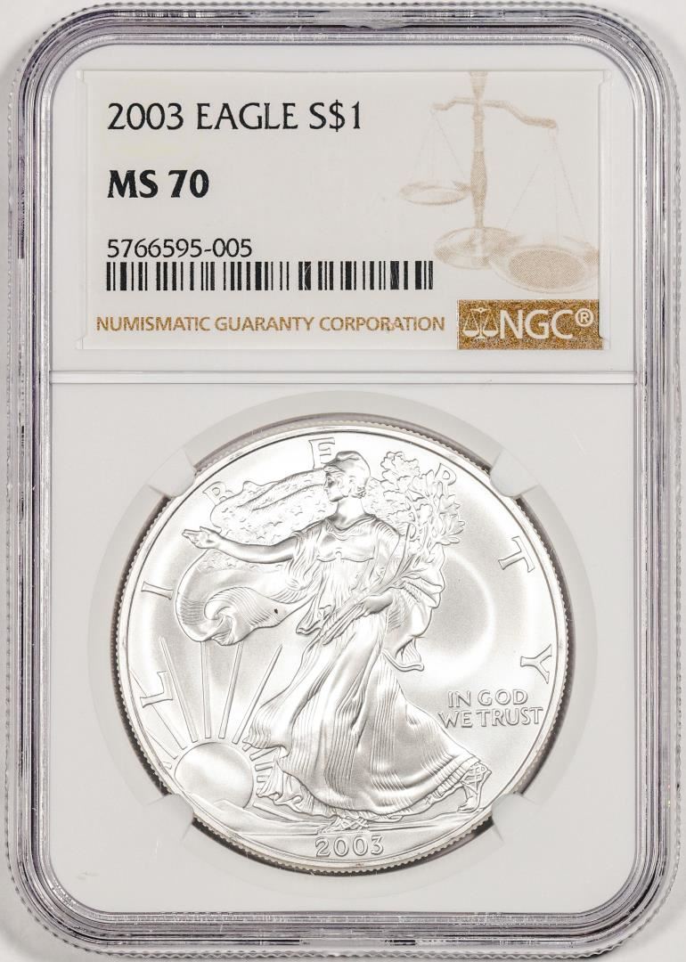 One 2003 $1 American Silver Eagle Coin NGC MS70. NGC Certified.
