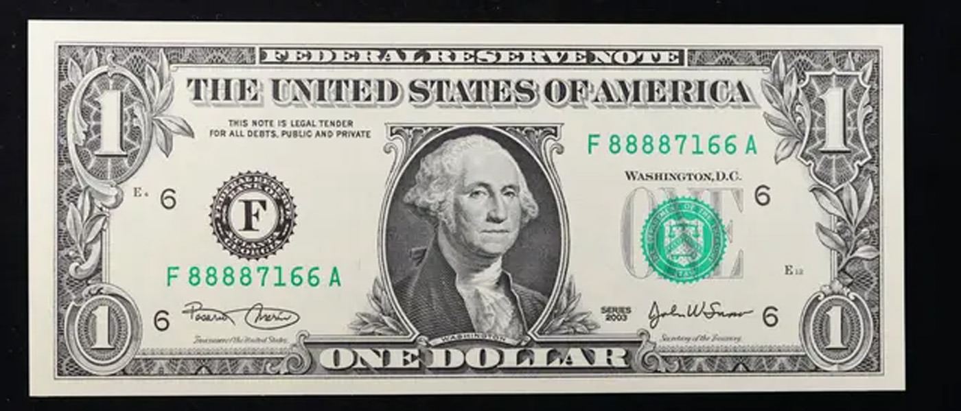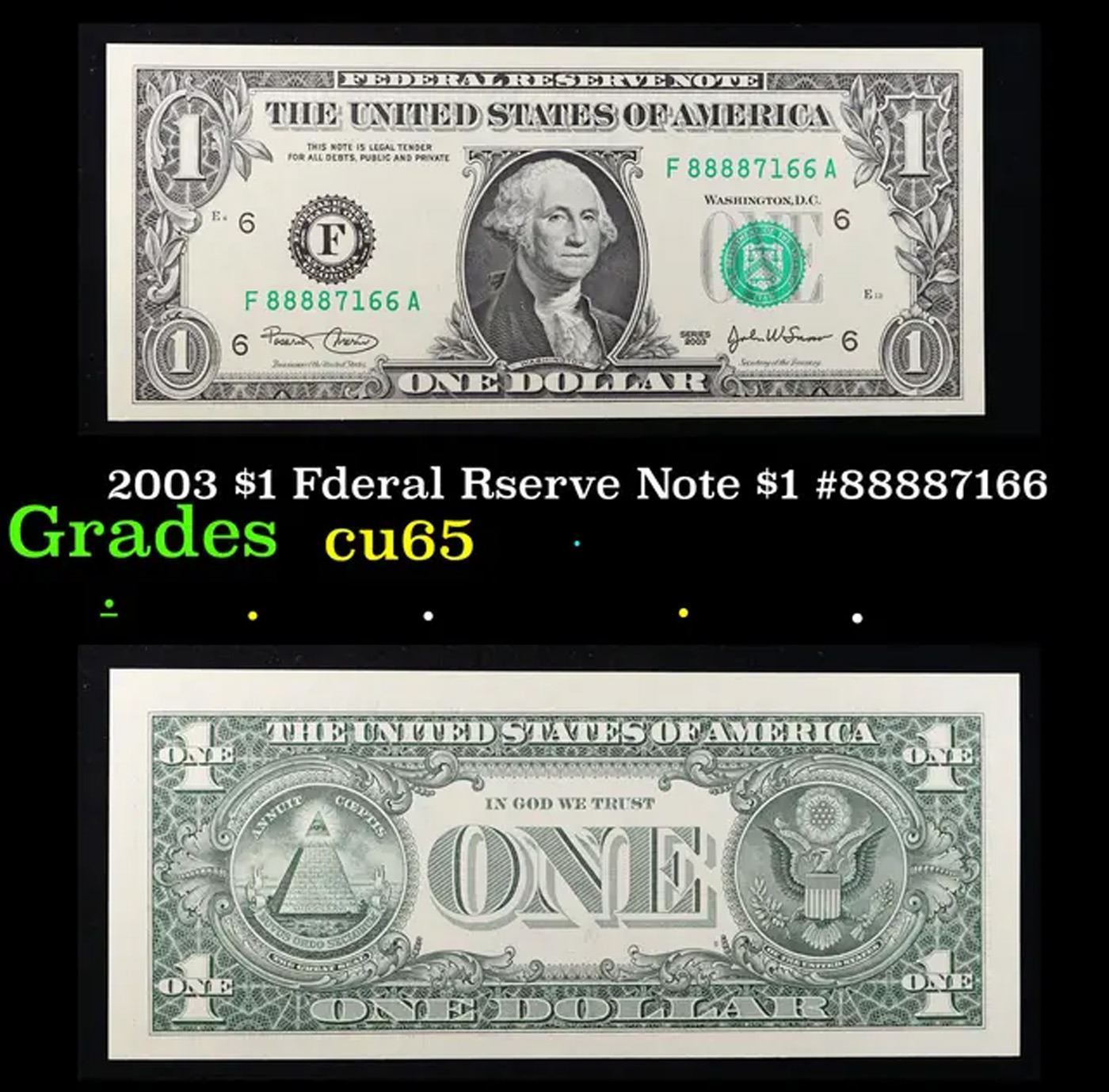 2003 $1 Fderal Rserve Note $1 #88887166 Grades Gem CU.