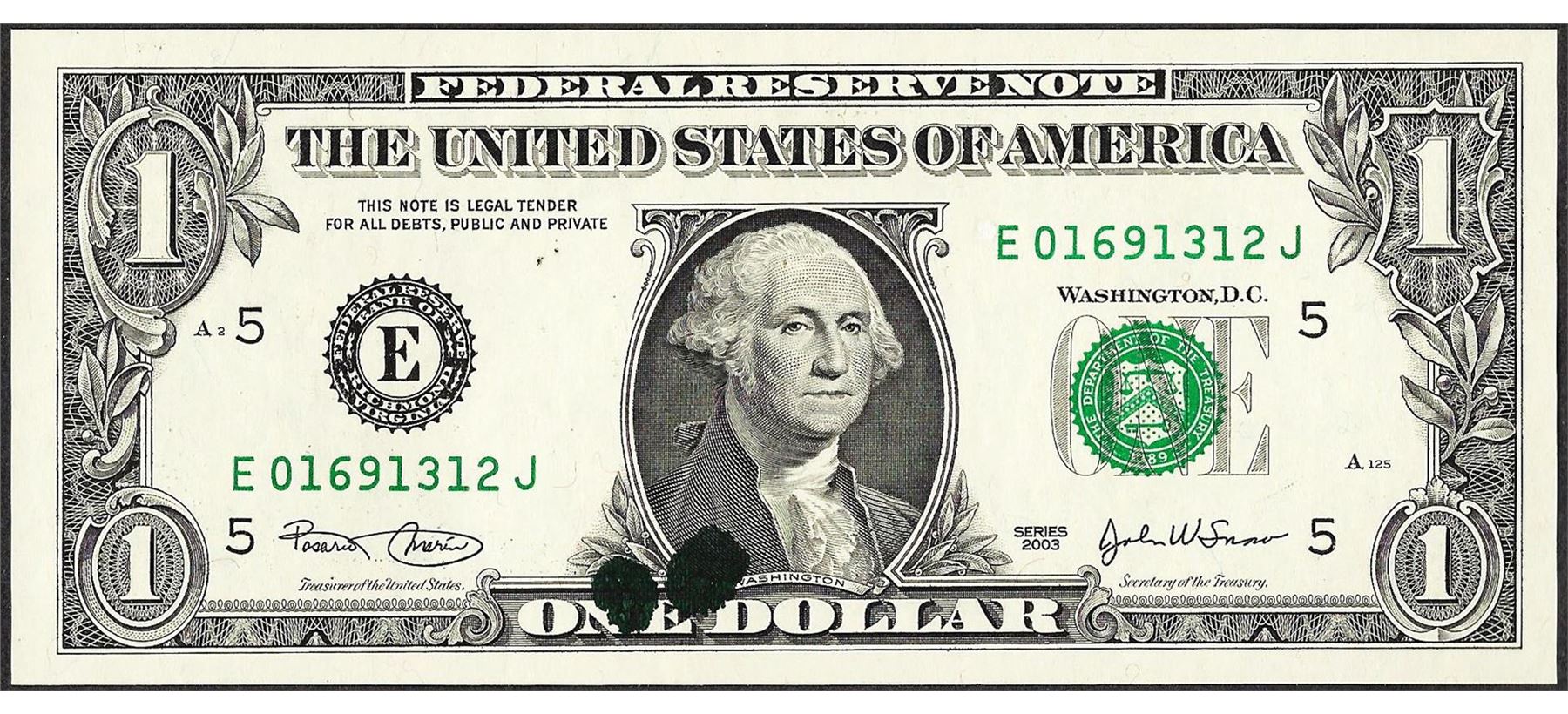 One 2003 $1 Federal Reserve Note Ink Smear ERROR.