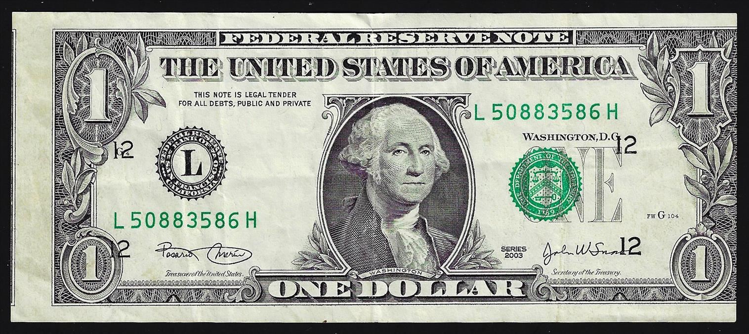 One 2003 $1 Federal Reserve Note Misalignment ERROR.