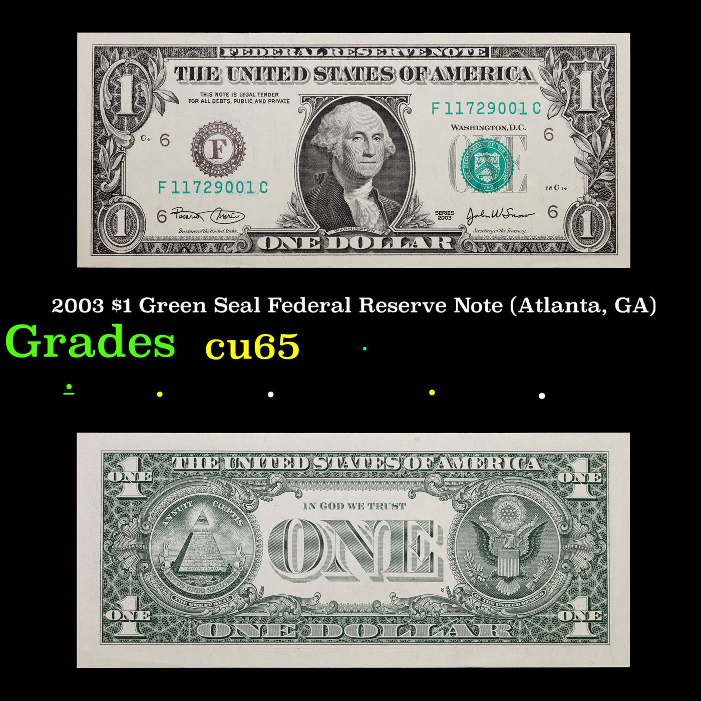 2003 $1 Green Seal Federal Reserve Note (Atlanta, GA) Grades Gem CU.