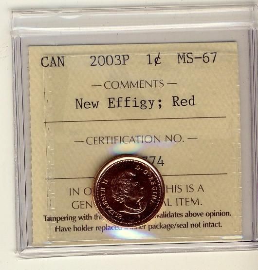 2003 1¢ New Effigy ICCS MS67 Full Red, A superb GEM example.