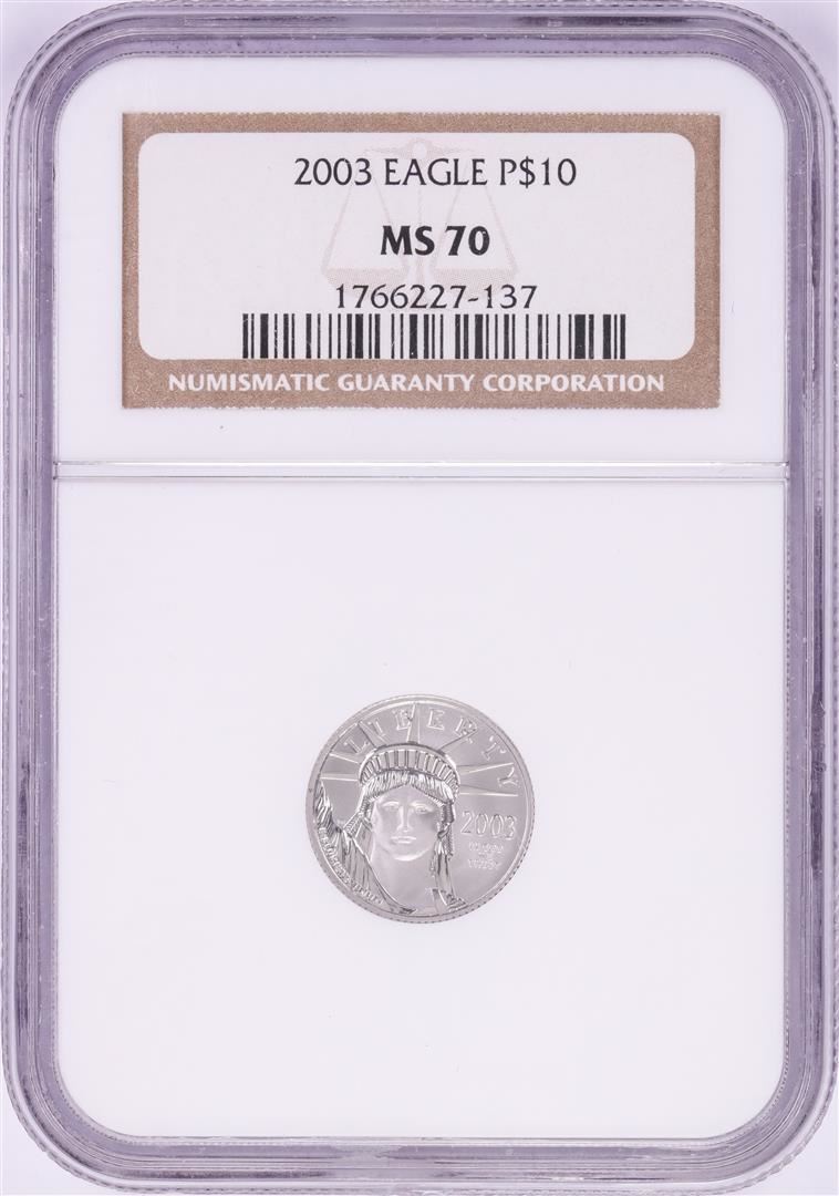 One 2003 $10 Platinum American Eagle Coin NGC MS70. NGC Certified.