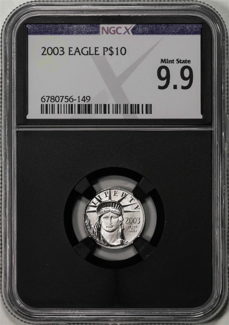 One 2003 $10 Platinum American Eagle Coin NGCX Mint State 9.9. NGCX Certified.