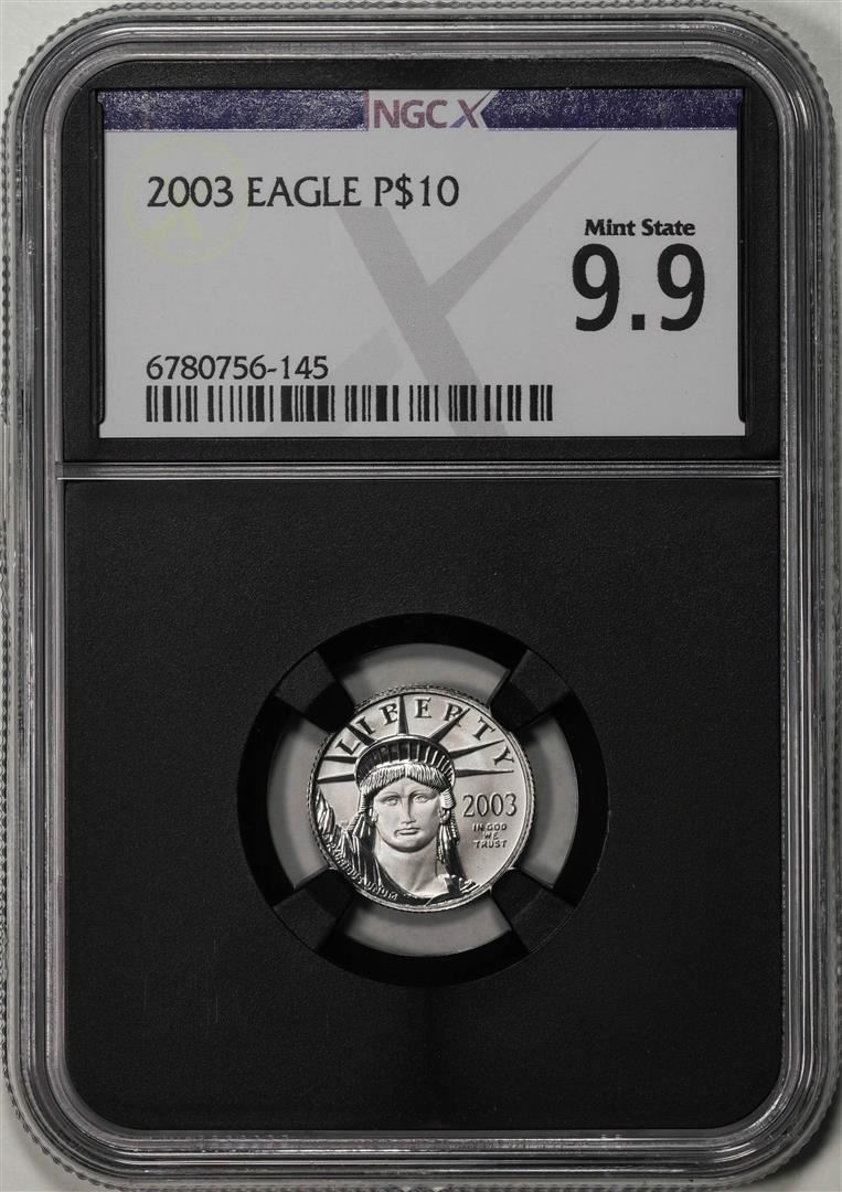 One 2003 $10 Platinum American Eagle Coin NGCX Mint State 9.9. NGCX Certified.
