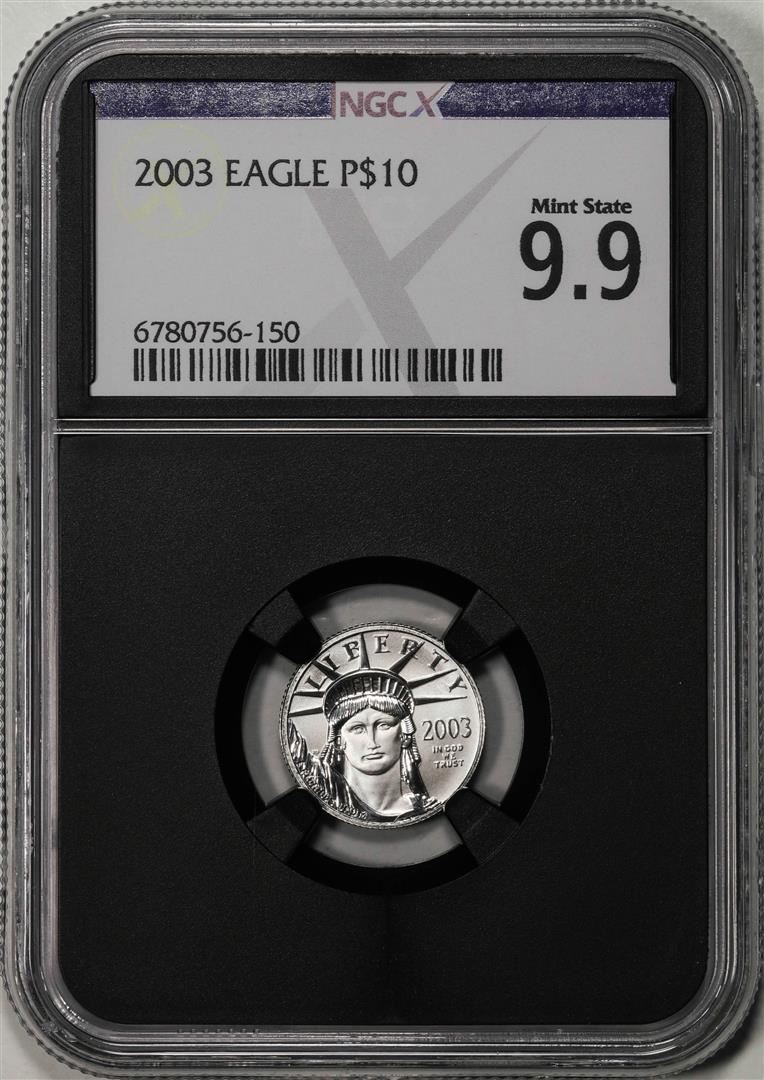 One 2003 $10 Platinum American Eagle Coin NGCX Mint State 9.9. NGCX Certified.