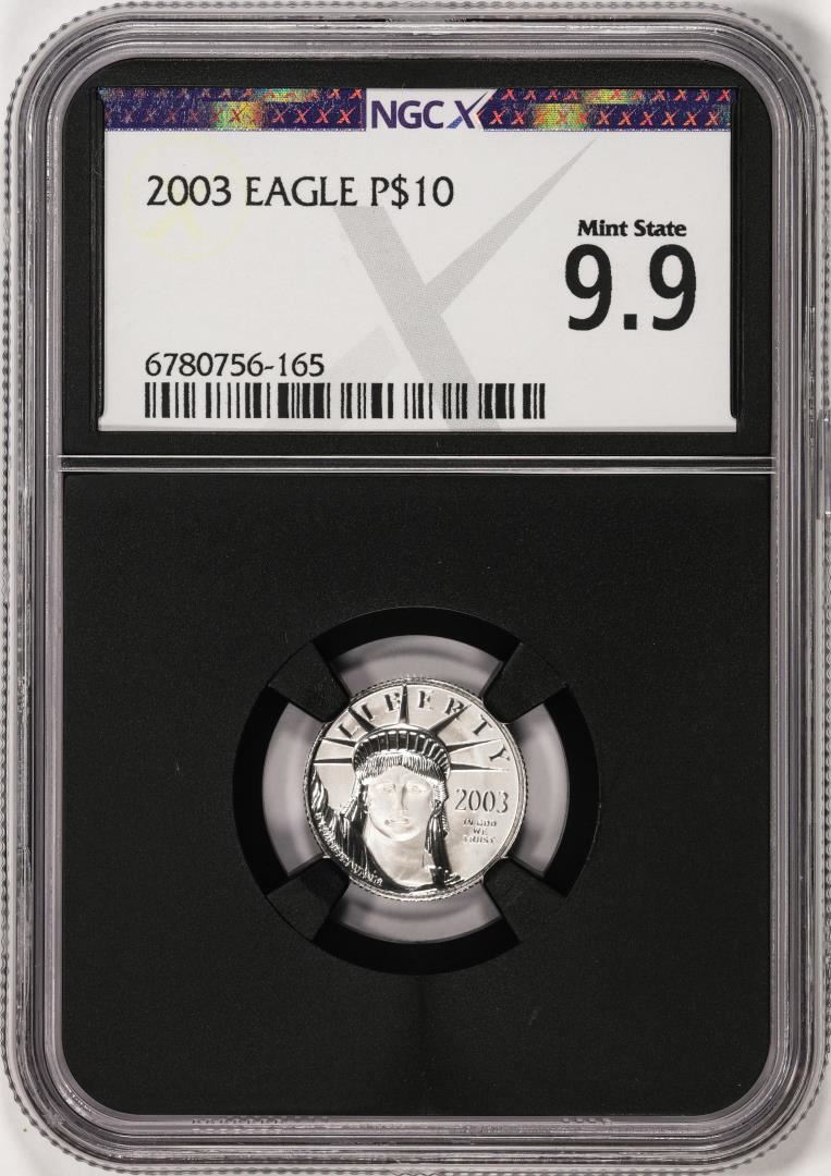 One 2003 $10 Platinum American Eagle Coin NGCX Mint State 9.9. NGCX Certified.