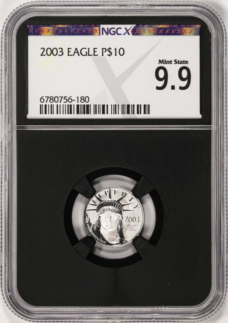 One 2003 $10 Platinum American Eagle Coin NGCX Mint State 9.9. NGCX Certified.