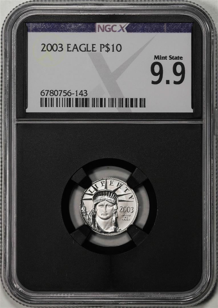 One 2003 $10 Platinum American Eagle Coin NGCX Mint State 9.9. NGCX Certified.