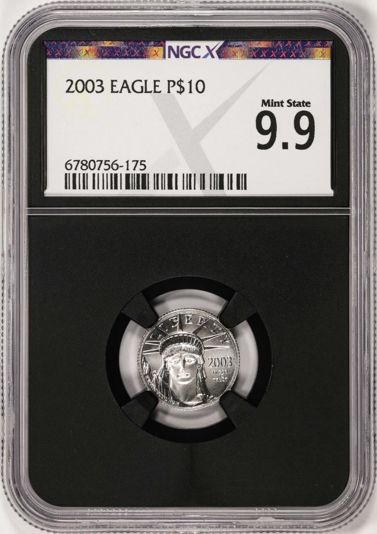 One 2003 $10 Platinum American Eagle Coin NGCX Mint State 9.9. NGCX Certified.