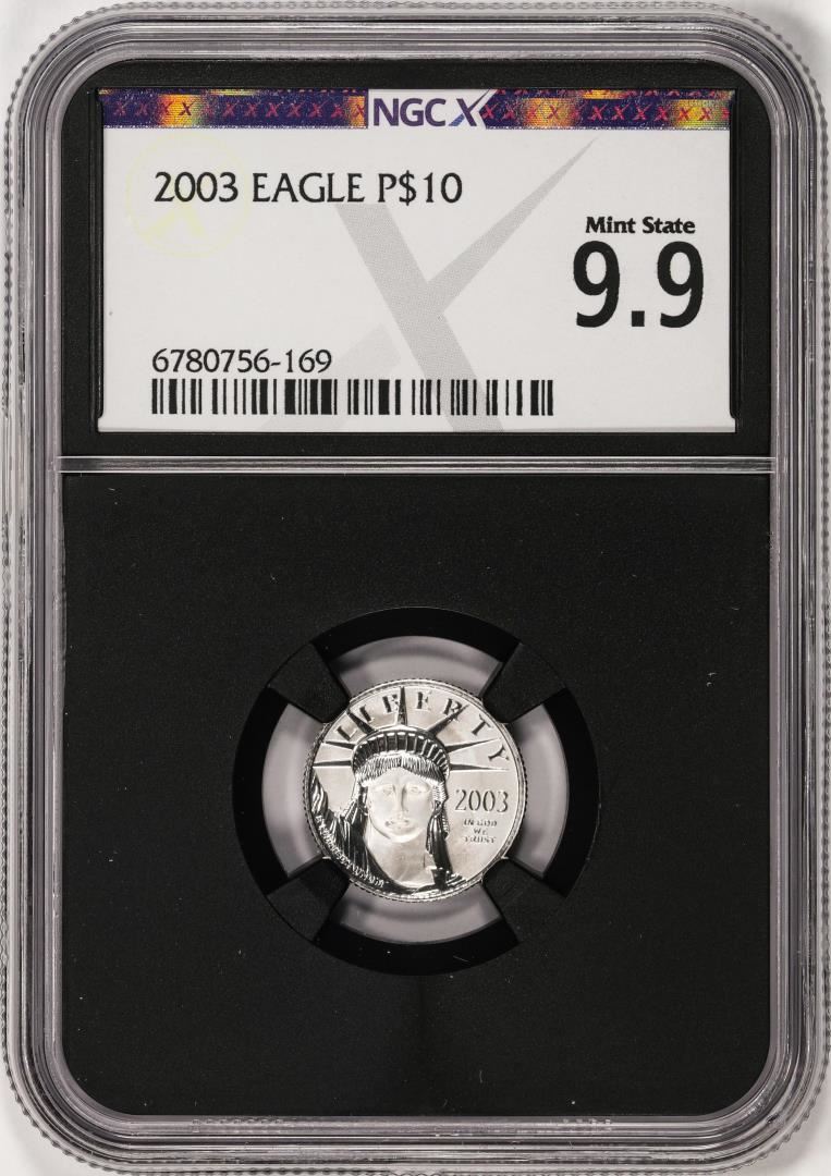 One 2003 $10 Platinum American Eagle Coin NGCX Mint State 9.9. NGCX Certified.