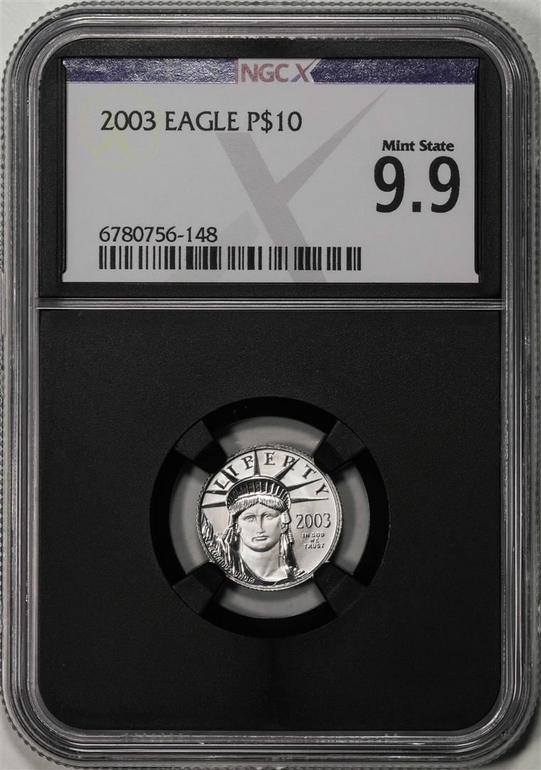 One 2003 $10 Platinum American Eagle Coin NGCX Mint State 9.9. NGCX Certified.