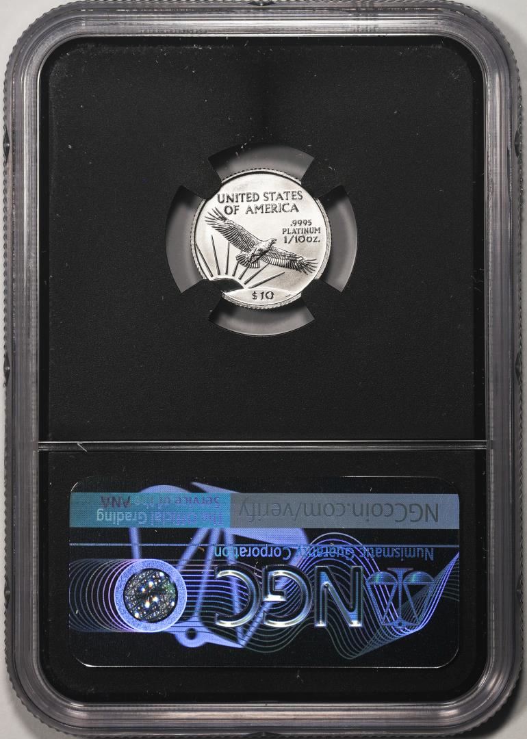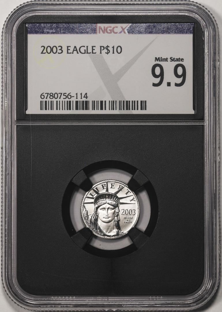 One 2003 $10 Platinum American Eagle Coin NGCX Mint State 9.9. NGCX Certified.