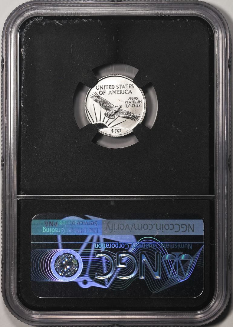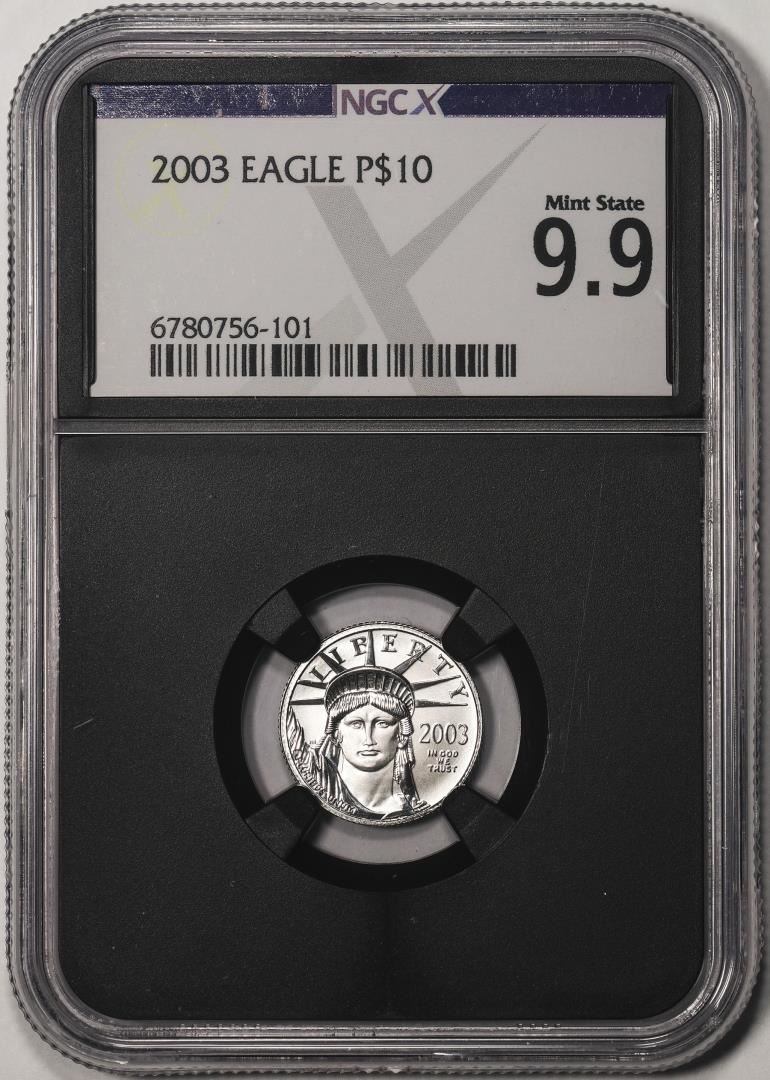 One 2003 $10 Platinum American Eagle Coin NGCX Mint State 9.9. NGCX Certified.