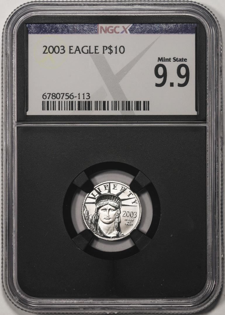One 2003 $10 Platinum American Eagle Coin NGCX Mint State 9.9. NGCX Certified.