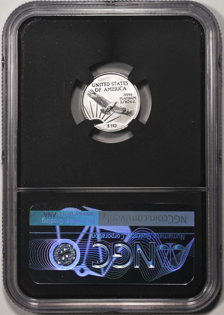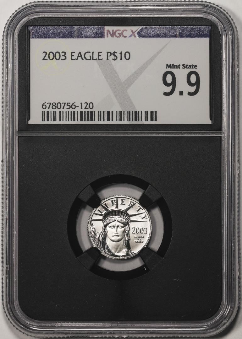One 2003 $10 Platinum American Eagle Coin NGCX Mint State 9.9. NGCX Certified.