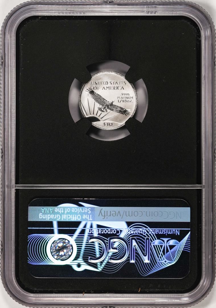 One 2003 $10 Platinum American Eagle Coin NGCX Mint State 9.9. NGCX Certified.