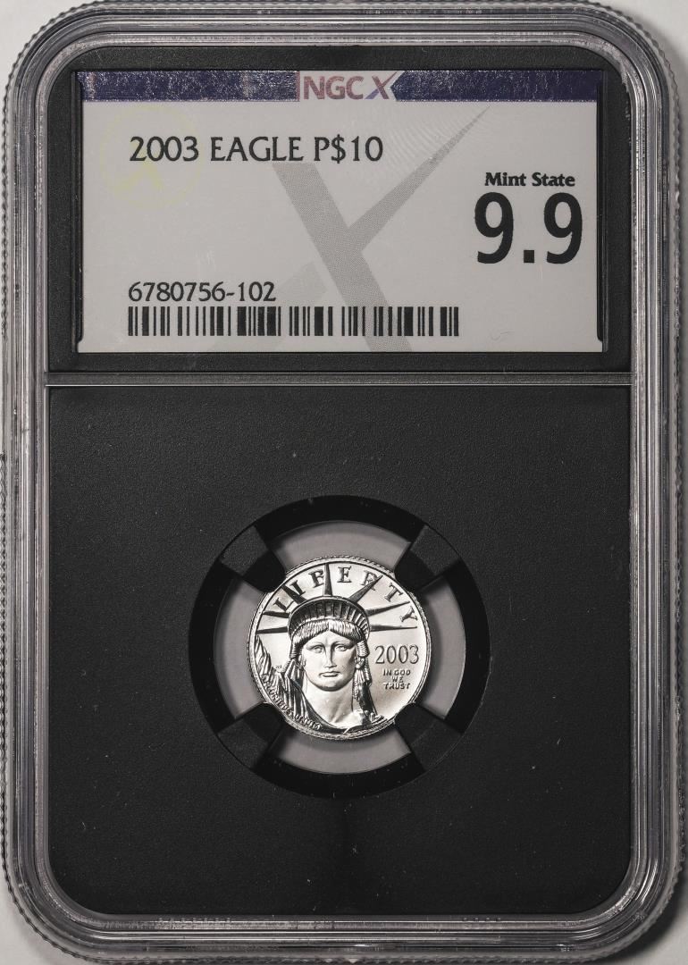 One 2003 $10 Platinum American Eagle Coin NGCX Mint State 9.9. NGCX Certified.