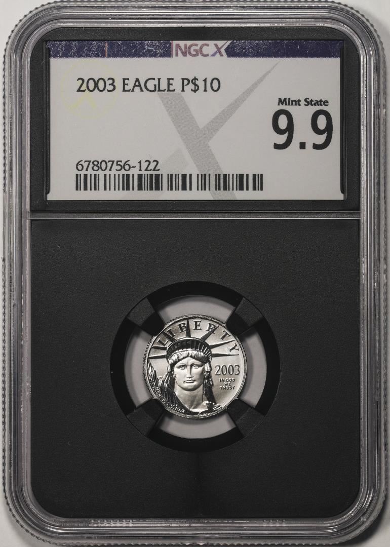One 2003 $10 Platinum American Eagle Coin NGCX Mint State 9.9. NGCX Certified.