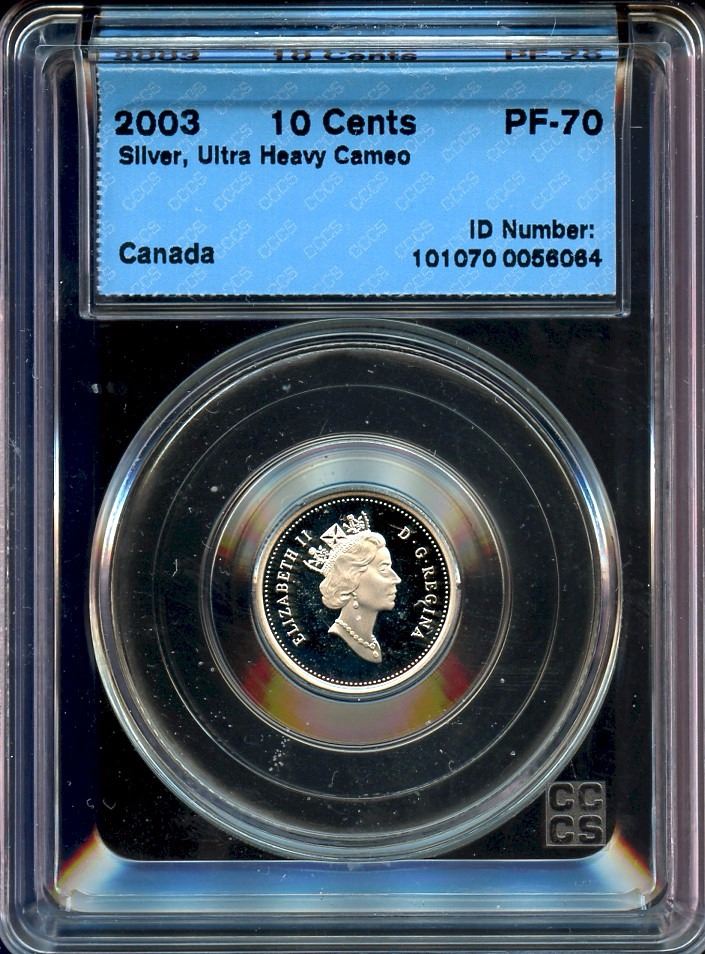 2003 10¢ silver, CCCS PF-70 Ultra Heavy Cameo.