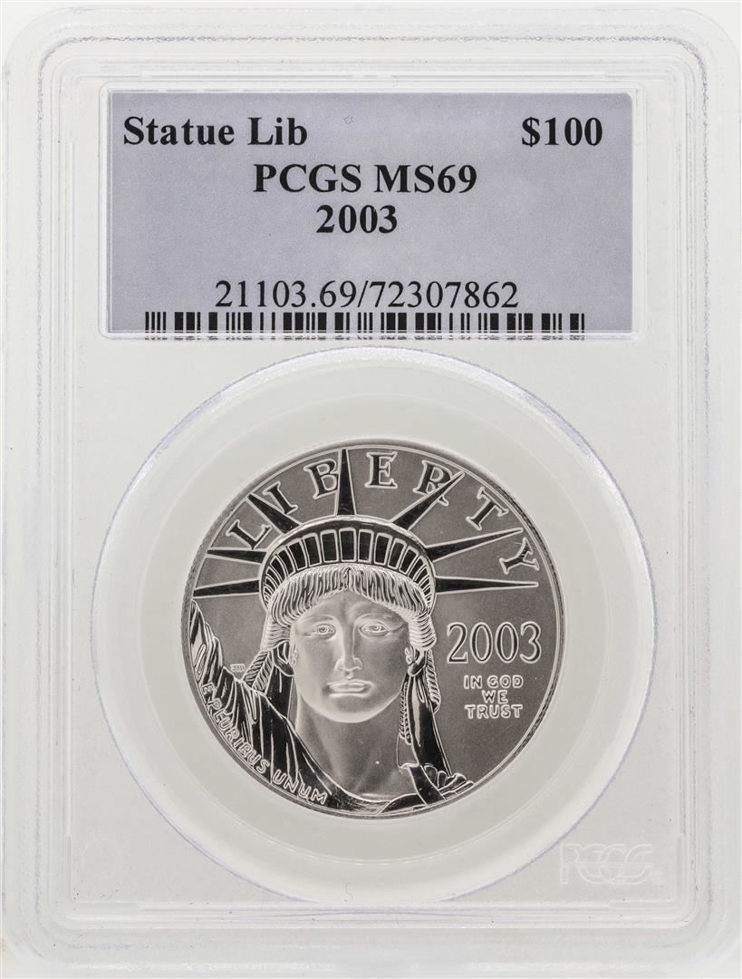 One 2003 $100 American Eagle Platinum Coin PCGS MS69. PCGS Graded.