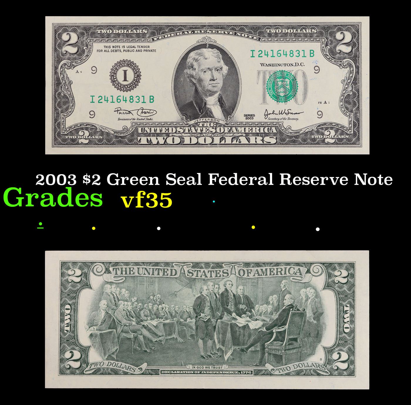 2003 $2 Green Seal Federal Reserve Note Grades vf++.