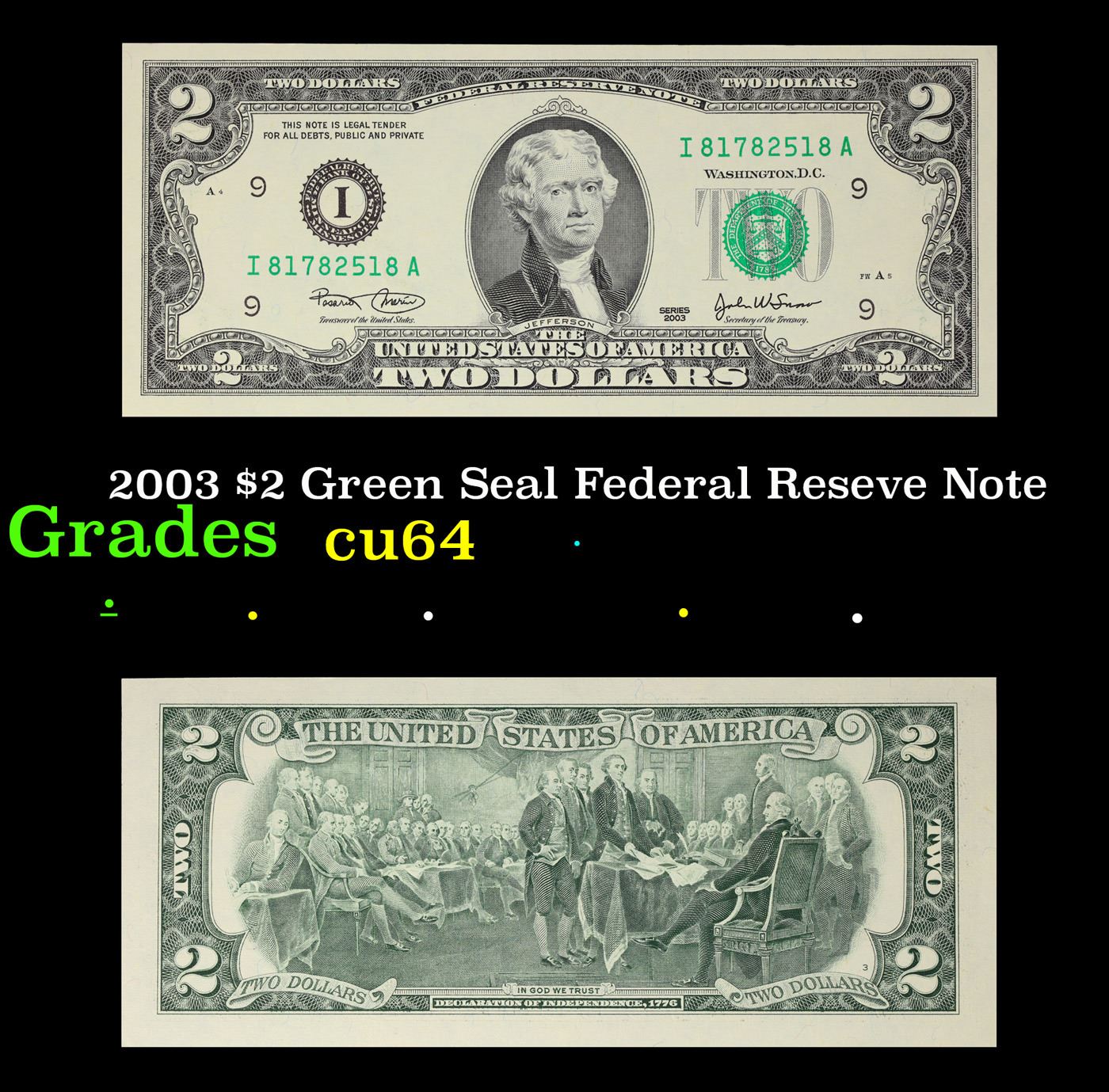 2003 $2 Green Seal Federal Reseve Note Grades Choice CU.