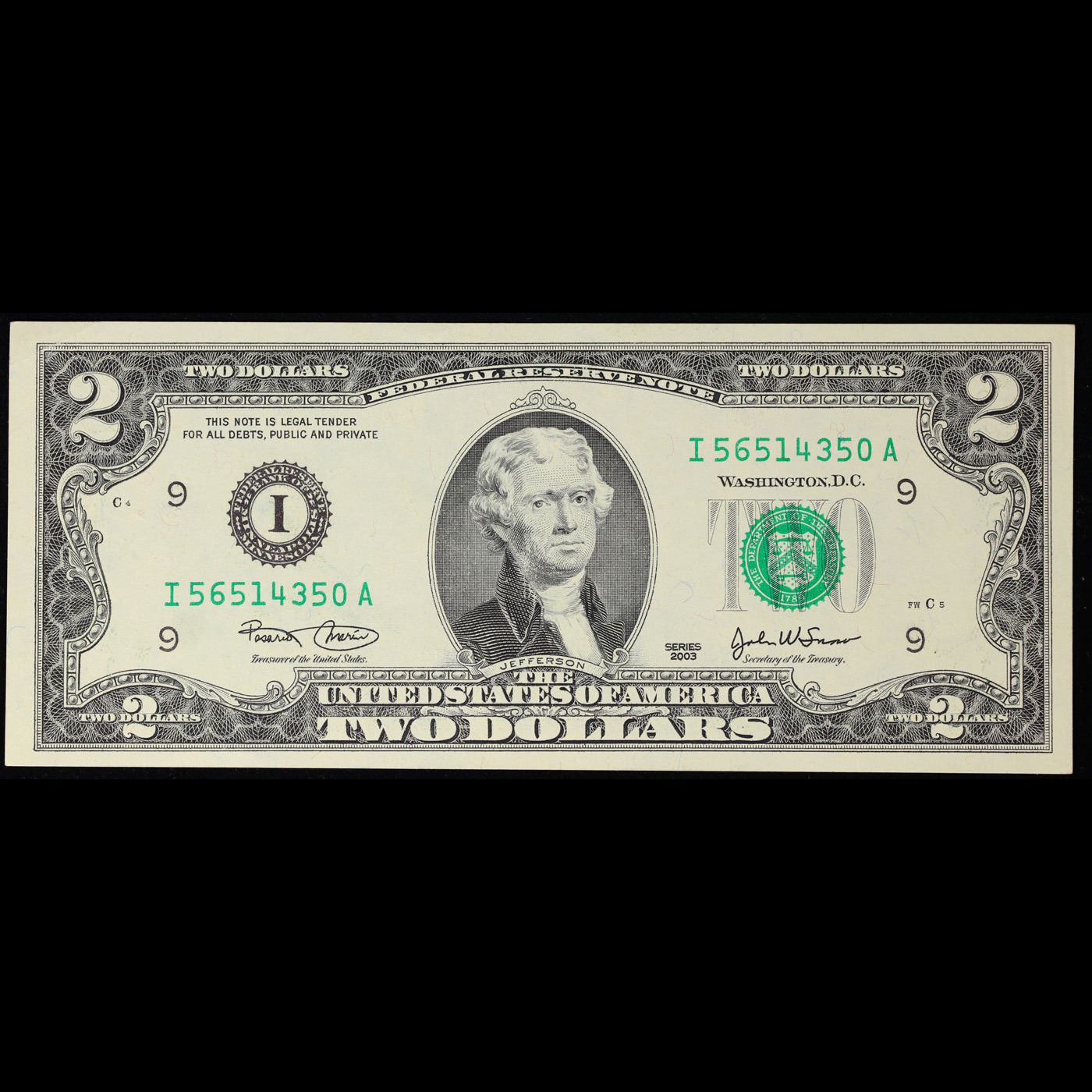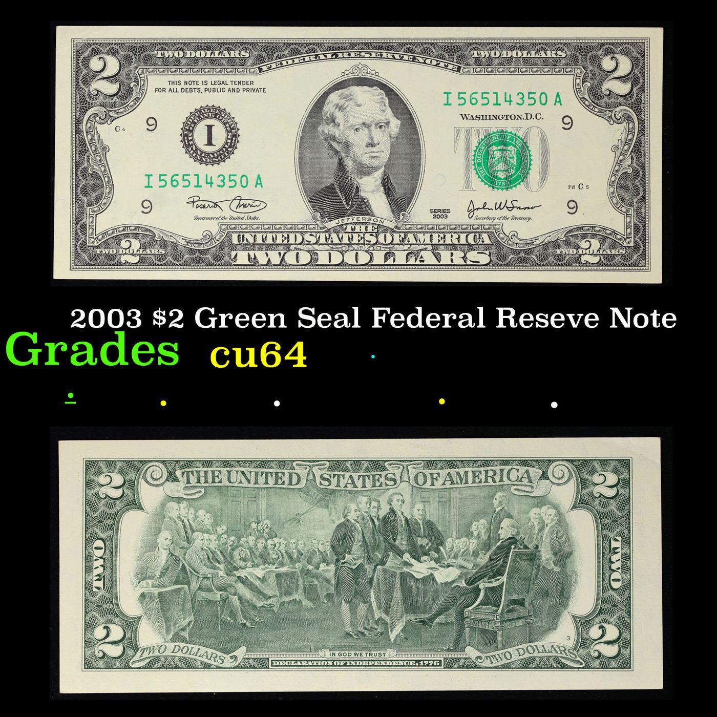 2003 $2 Green Seal Federal Reseve Note Grades Choice CU.