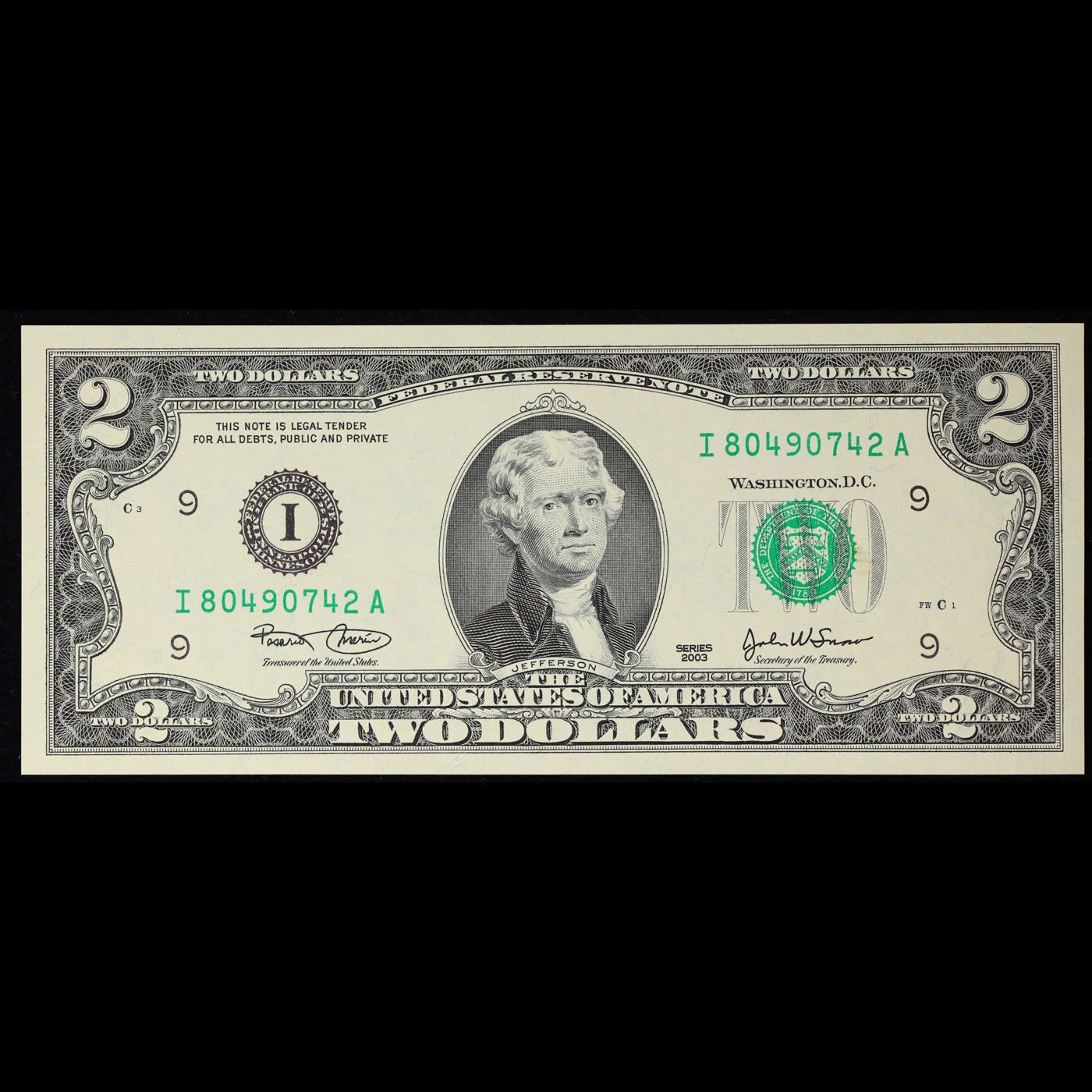 2003 $2 Green Seal Federal Reseve Note Grades Choice CU.